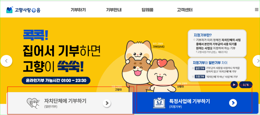 - 회원가입 후, 기부할 지자체 및 사업 선택